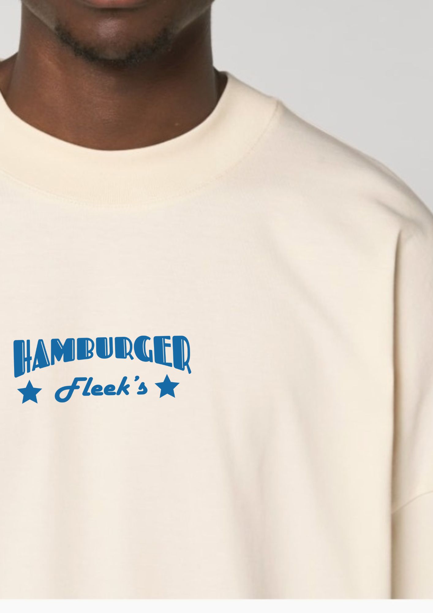 Diseño estampado en frontal y espalda de Burguer estilo New York y logo de marca frontal hecho DTF LOCALMADE.